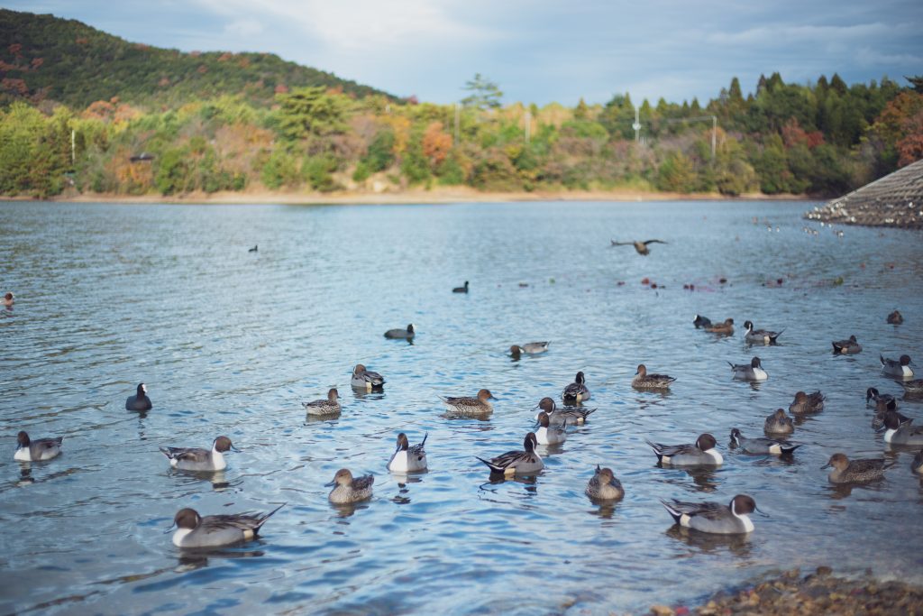 (冬には野生の鴨やコハクチョウもサロン側の池まで渡ってきます)