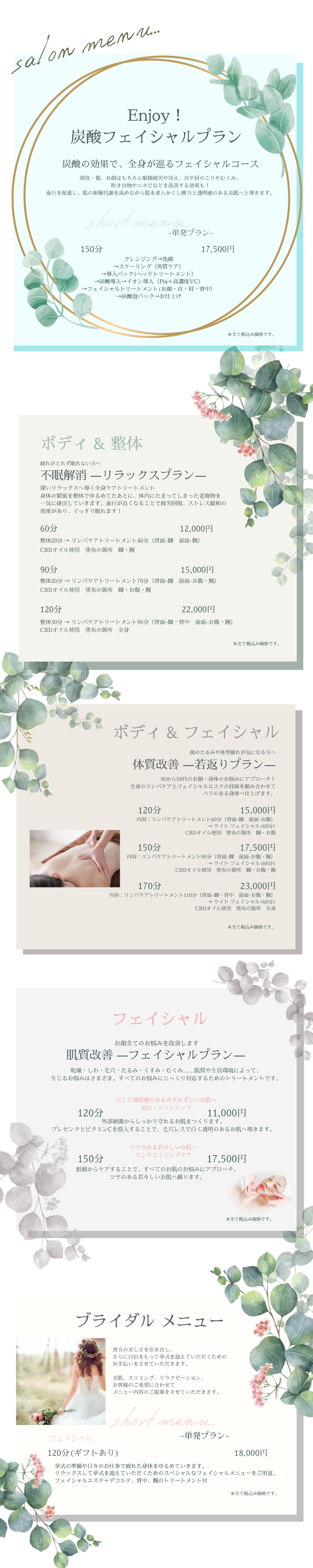 小野市のエステサロン – La nature kakehi(ラナチュール カケヒ)menu